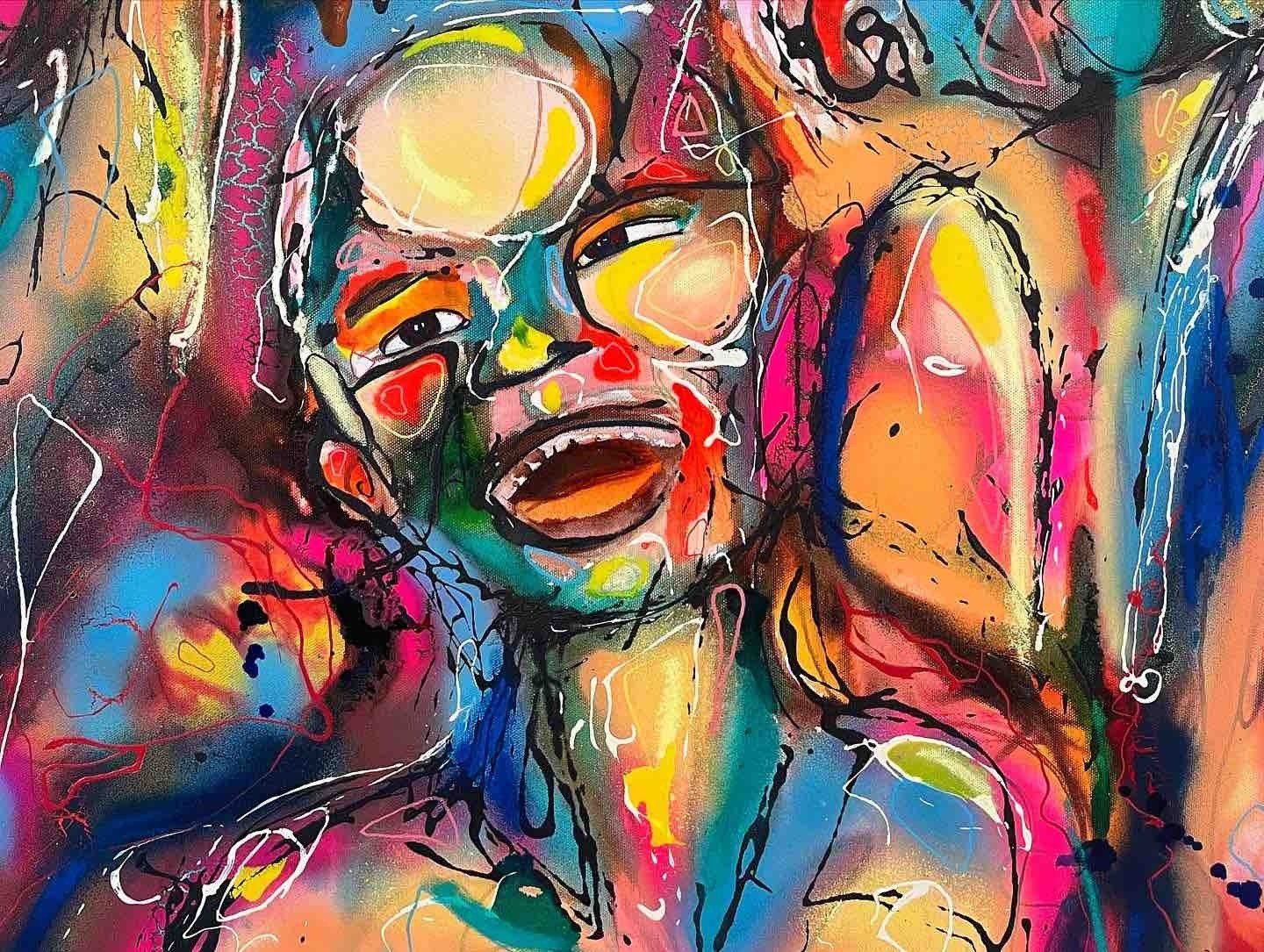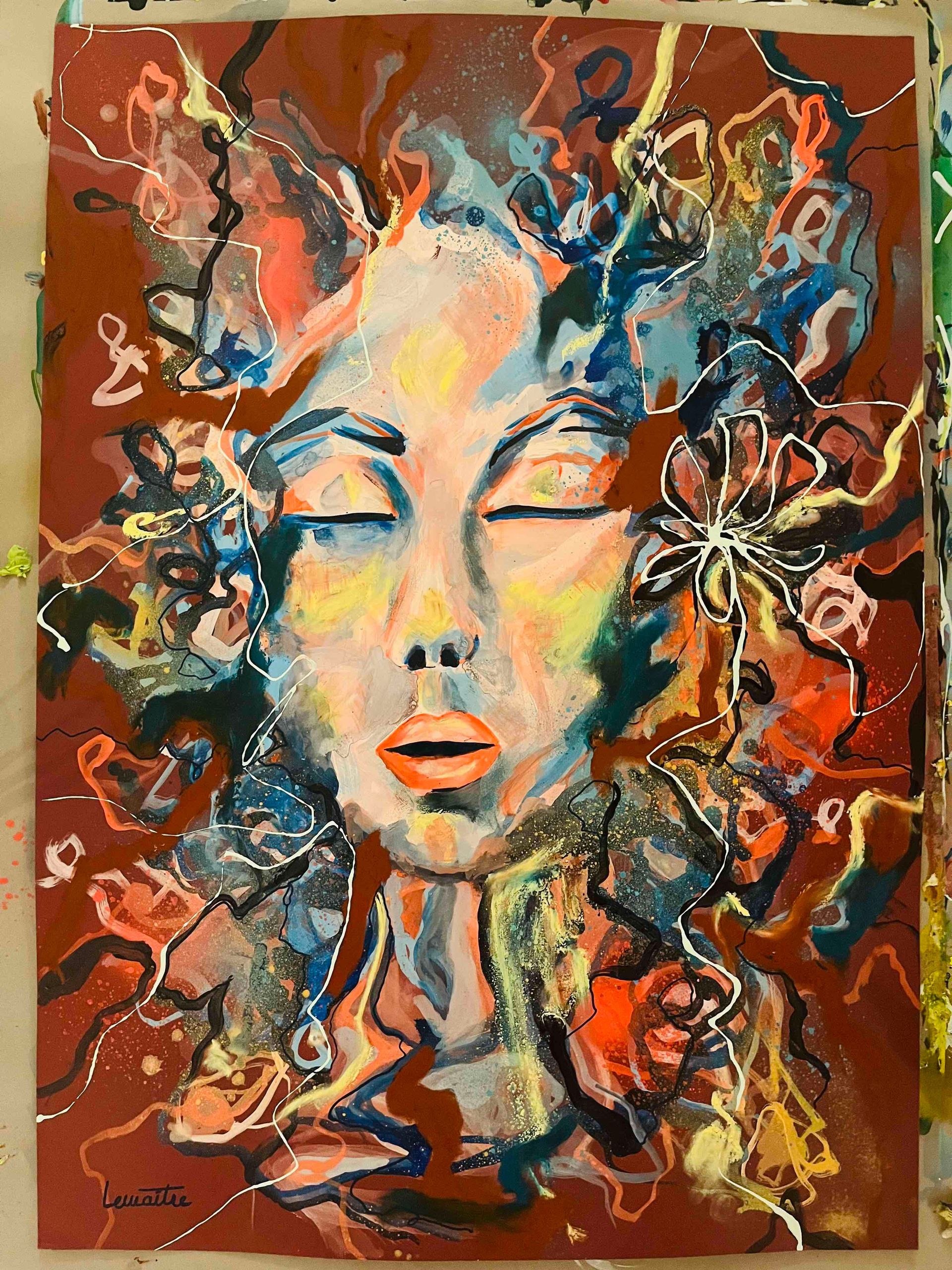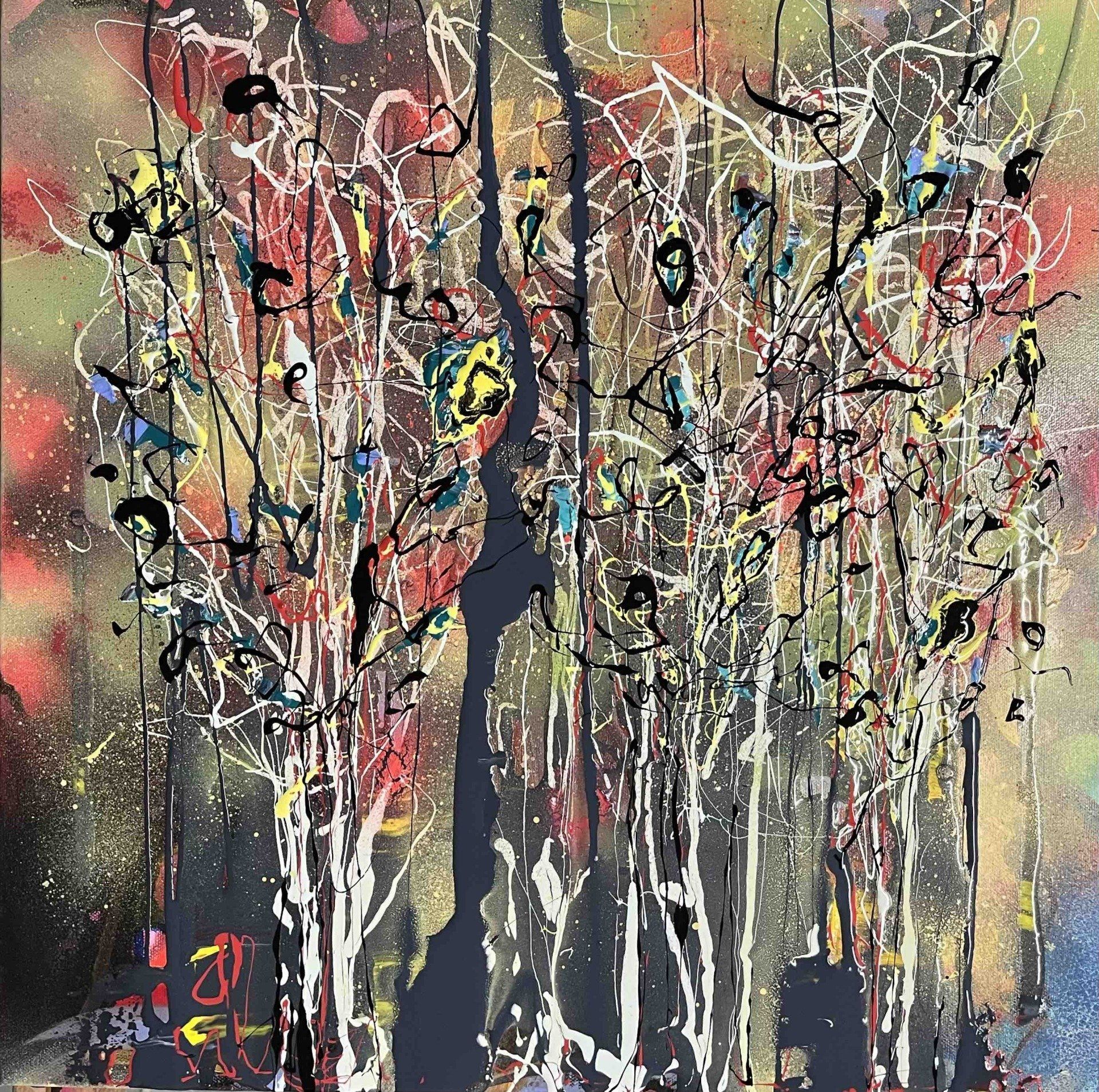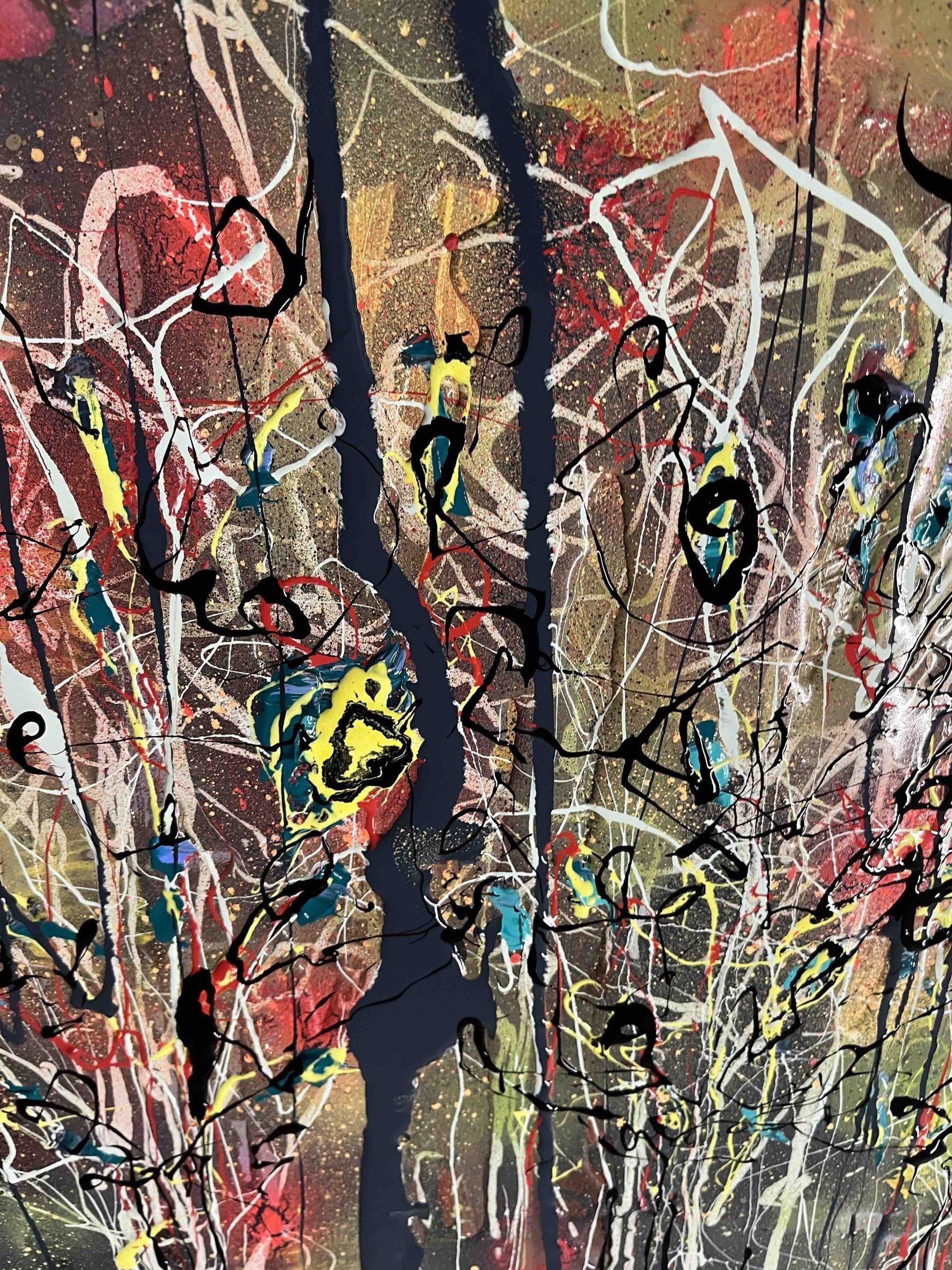 Peinture acrylique, encres acryliques, aérosols, Posca, sur Toile