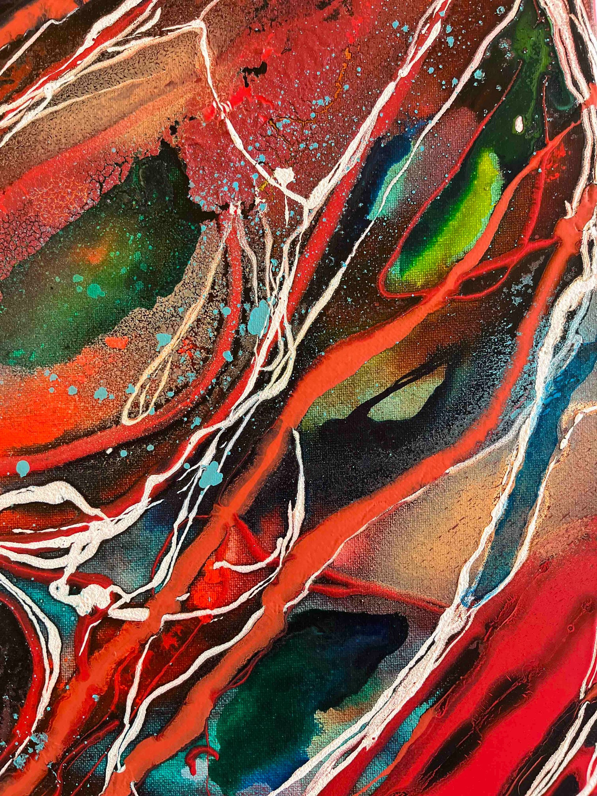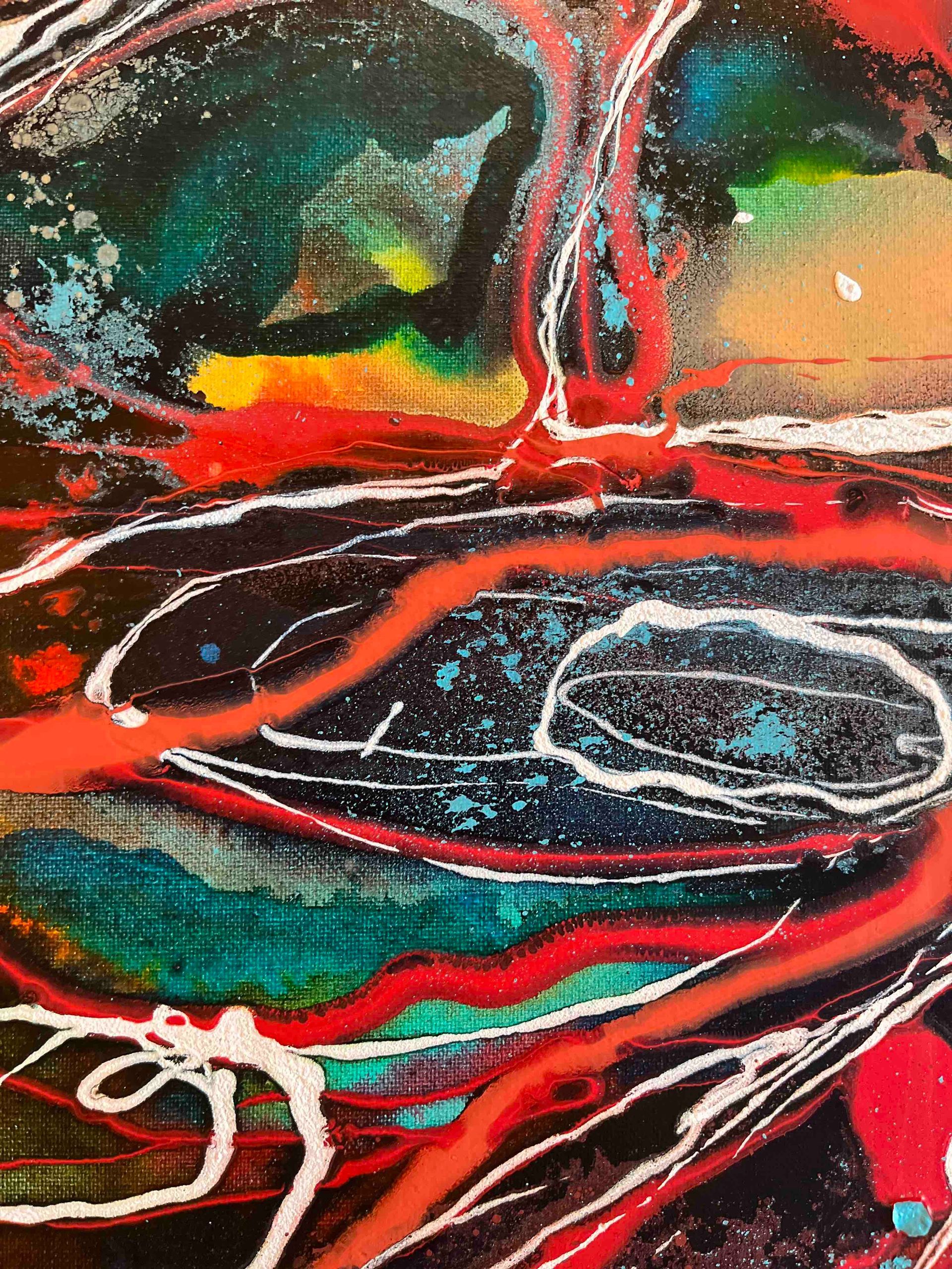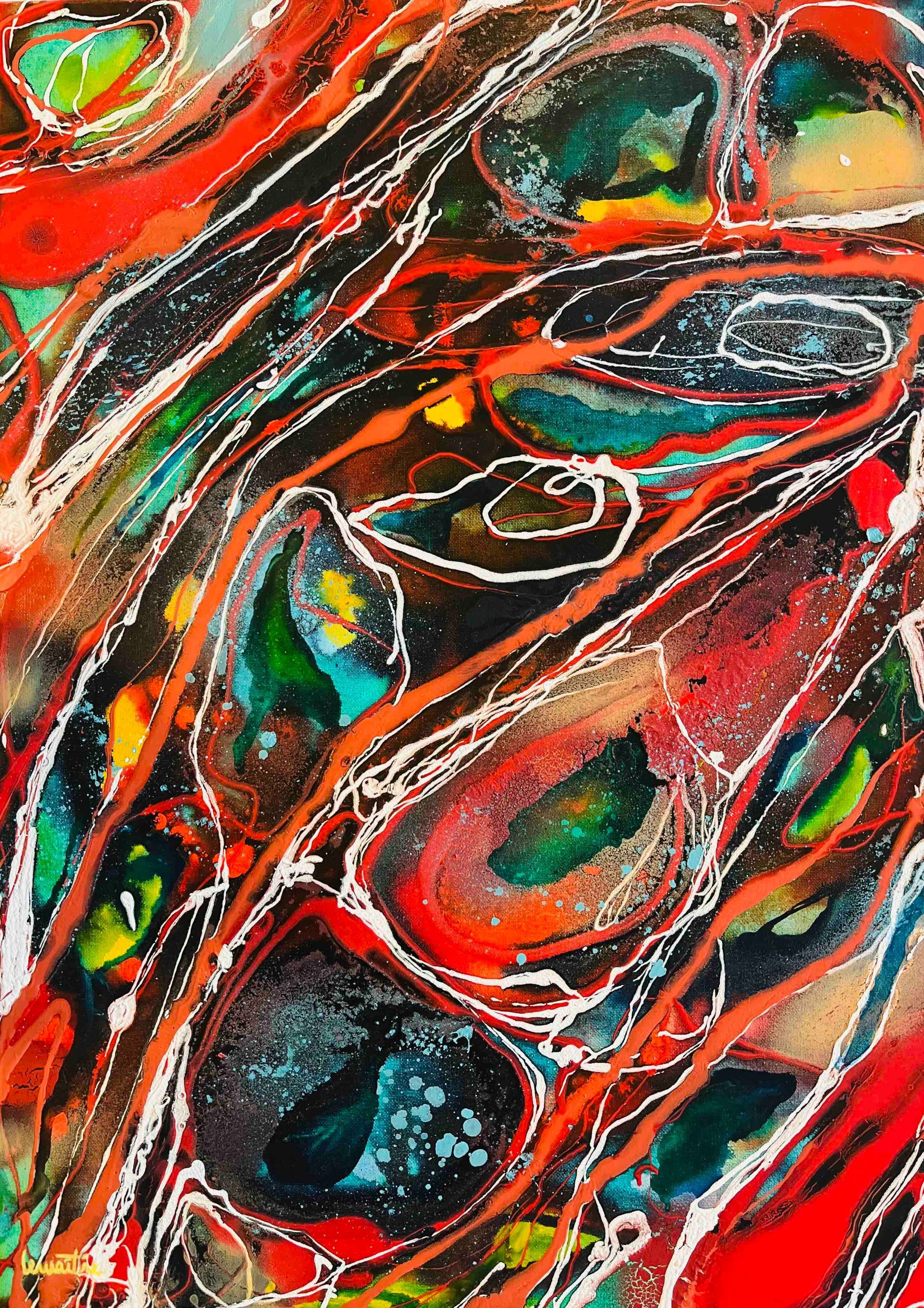 Peinture acrylique, encres acryliques, aérosols, Posca, sur Toile