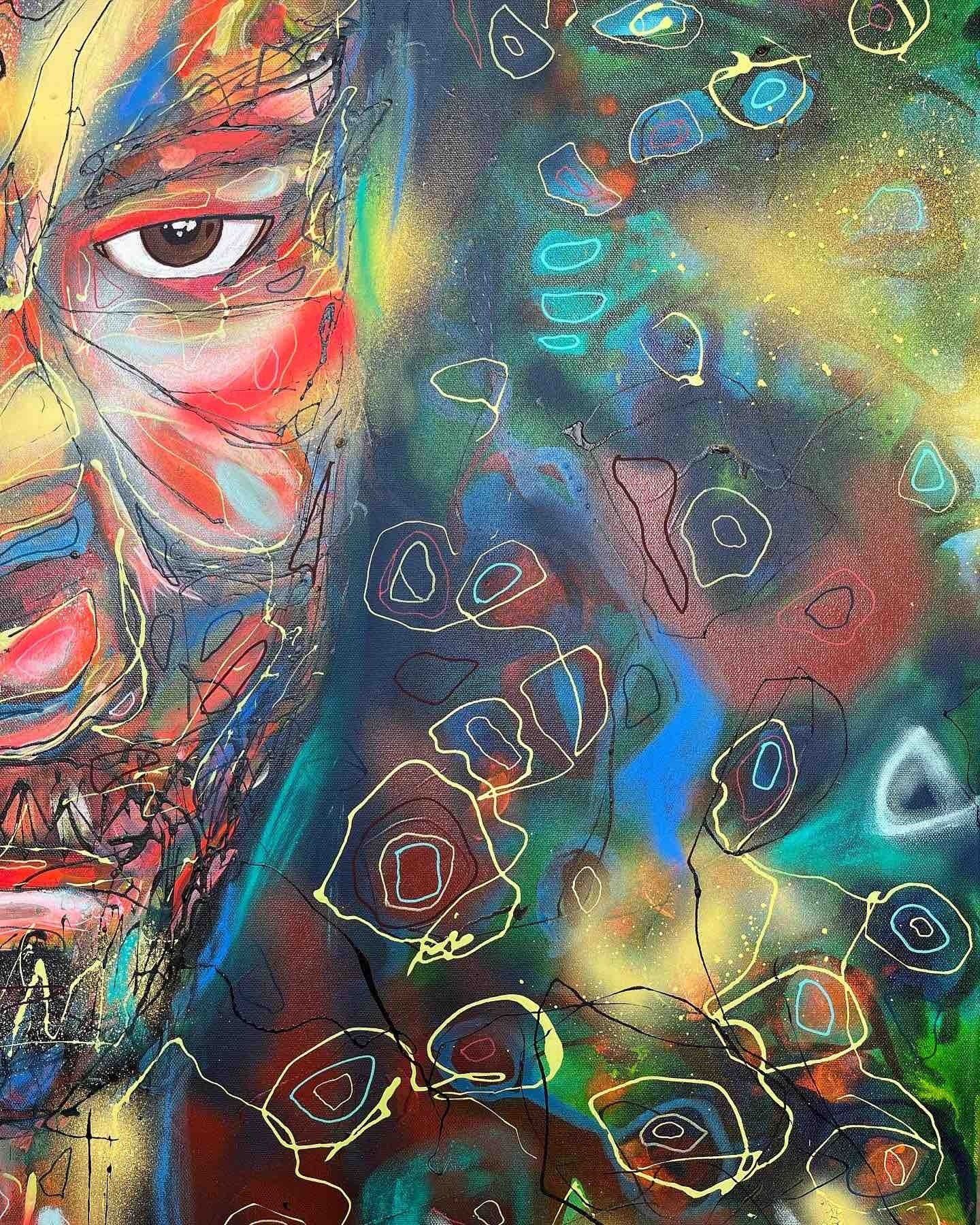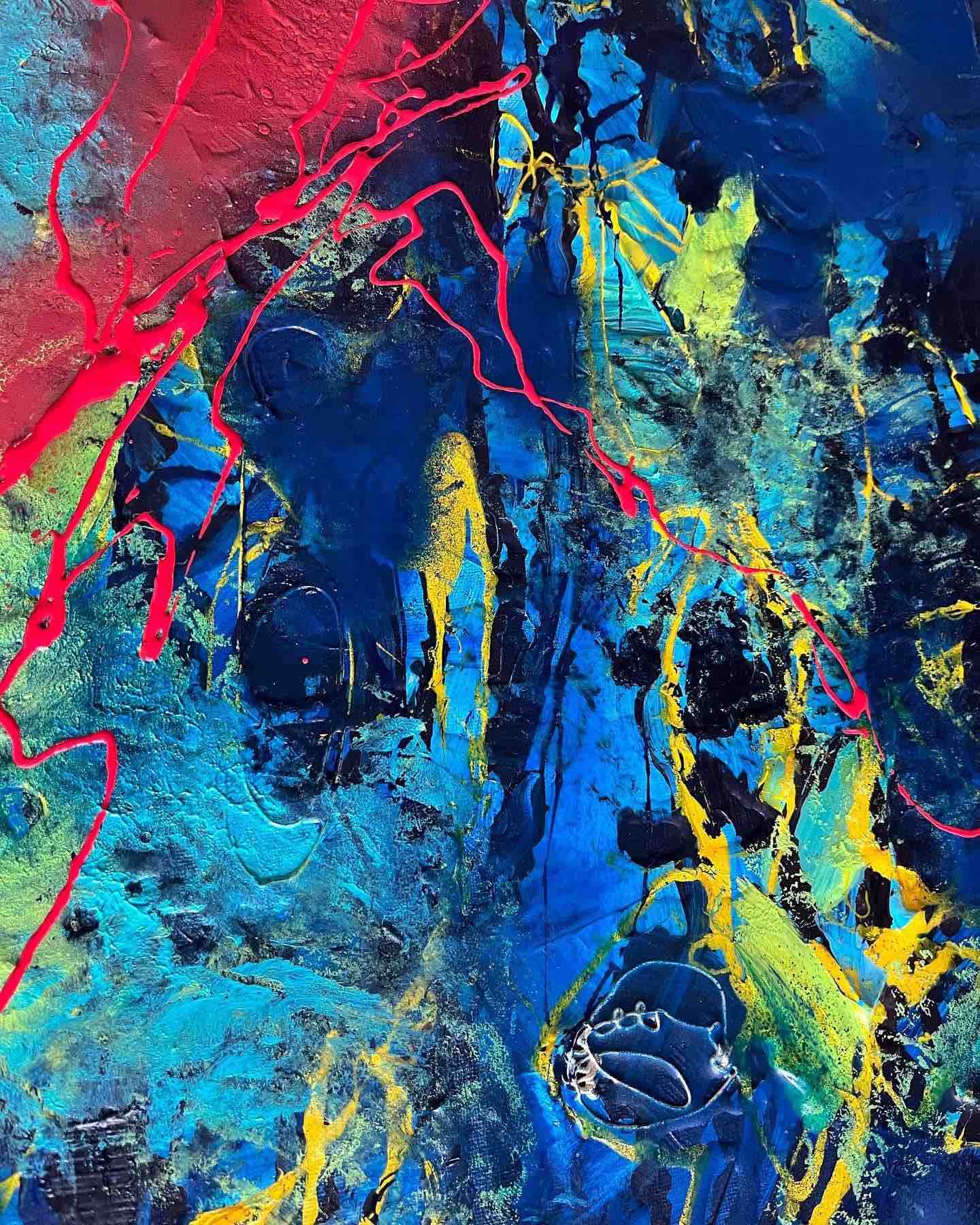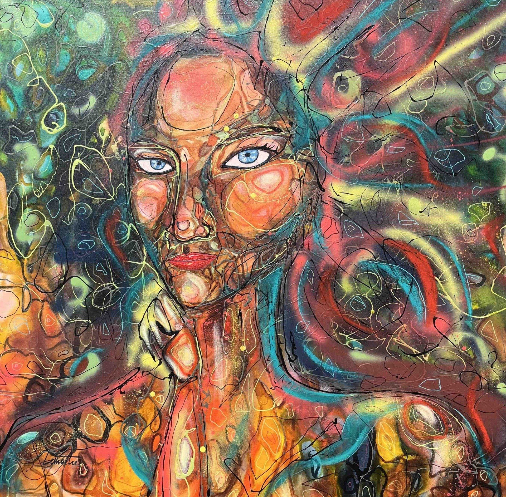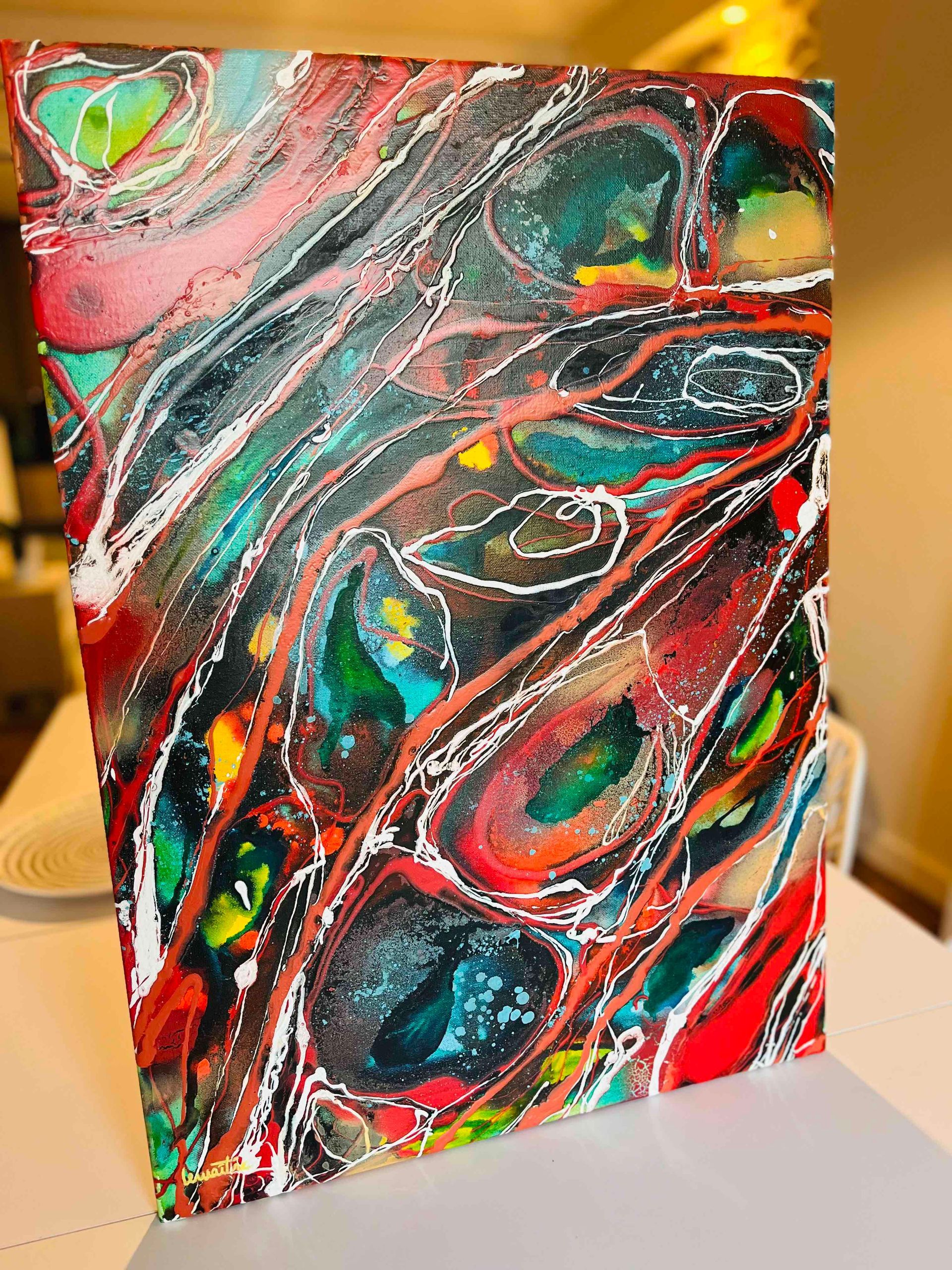 Peinture acrylique, encres acryliques, aérosols, Posca, sur Toile