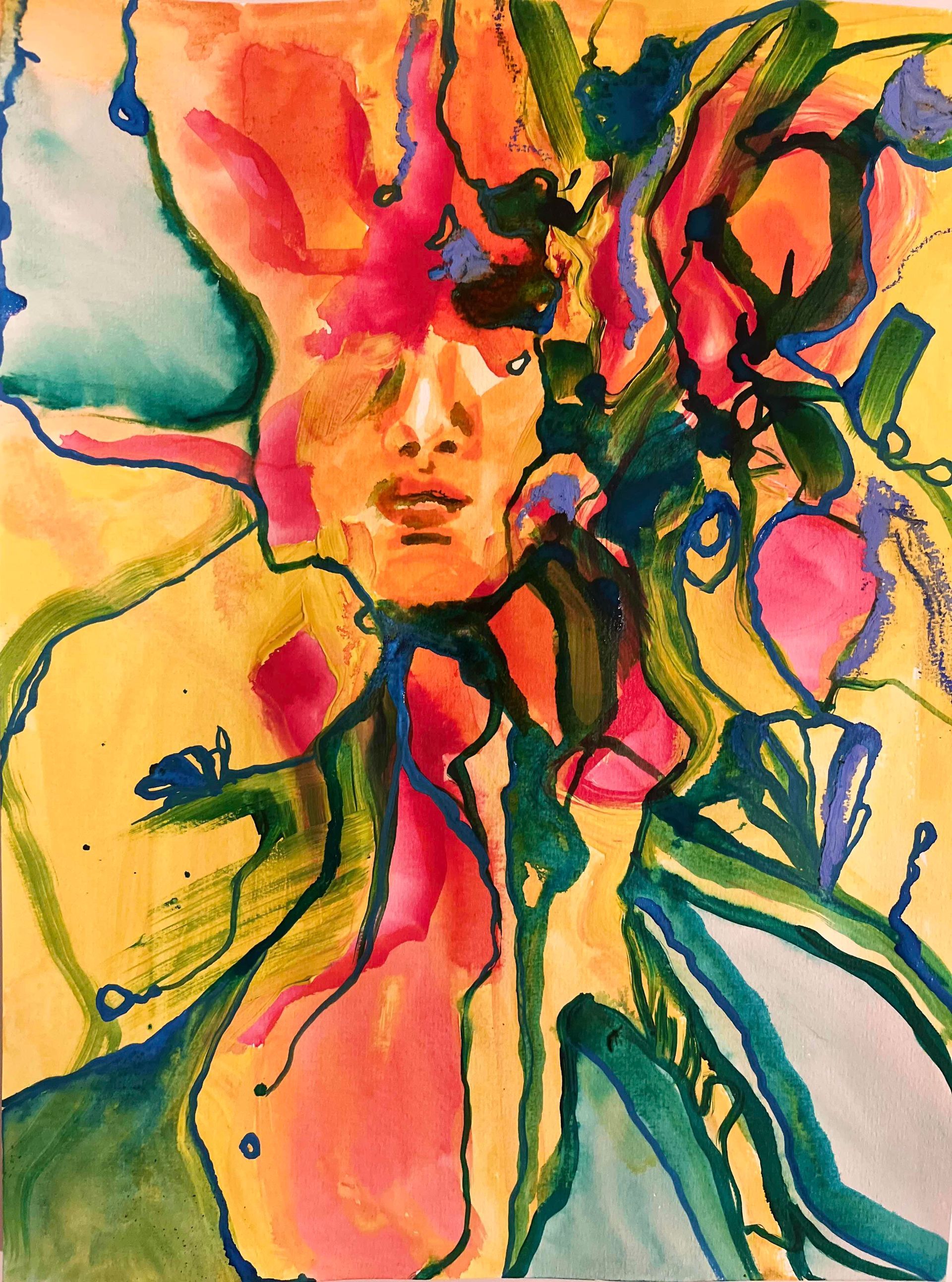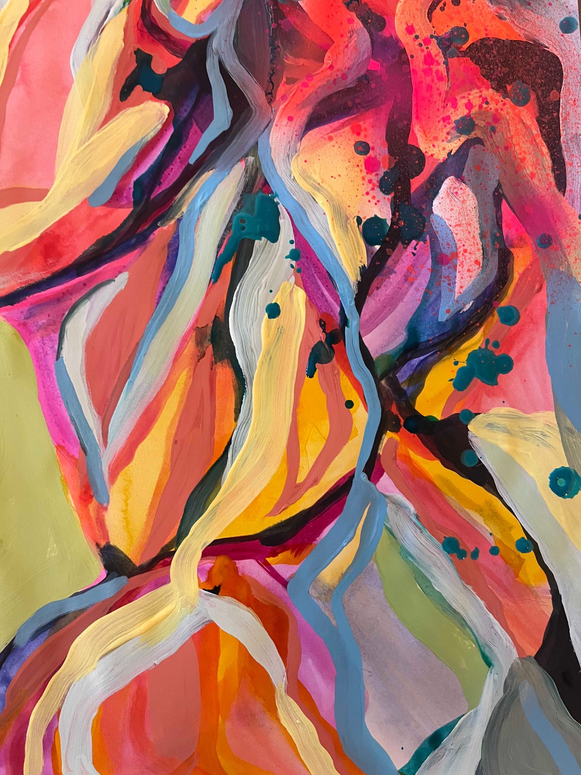 Peinture acrylique, encres acryliques, pastels gras, Posca, sur Canson