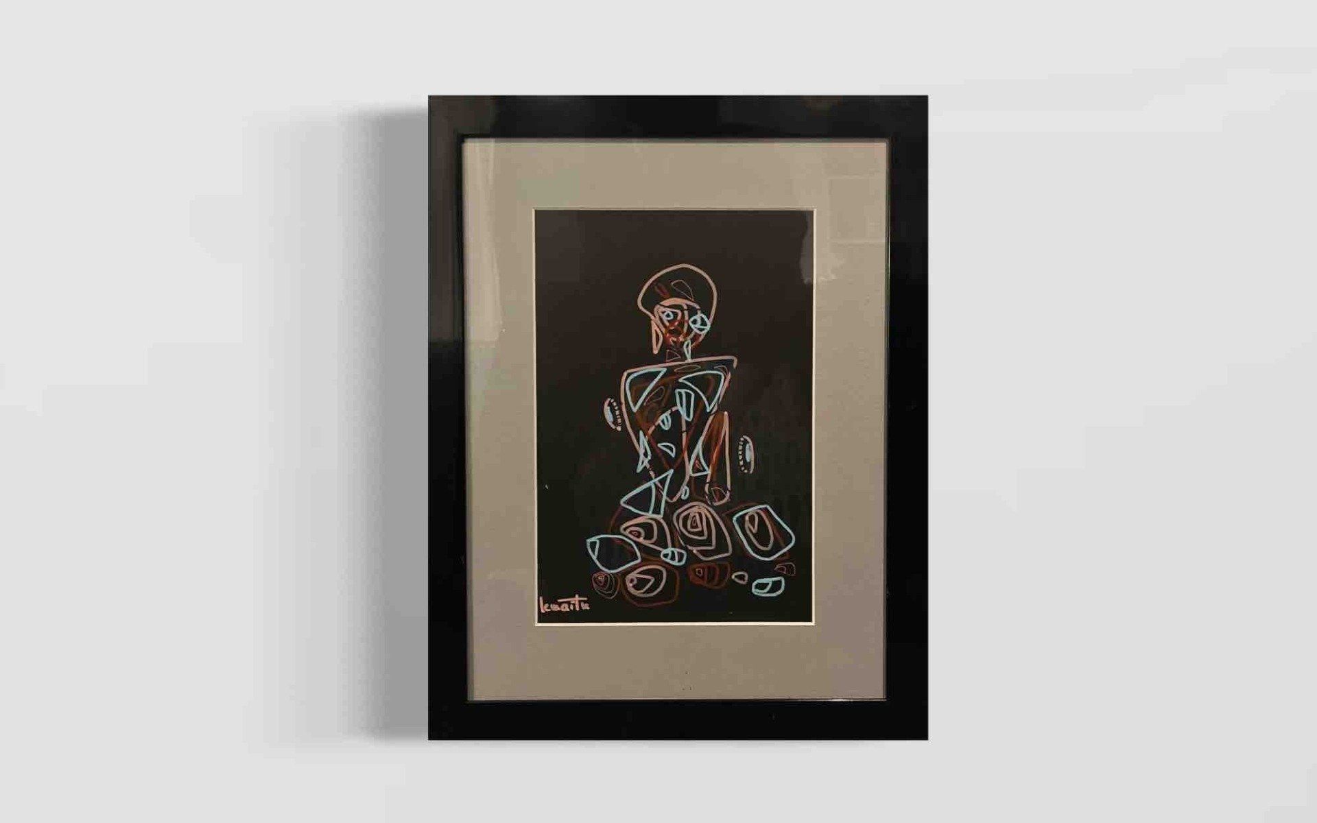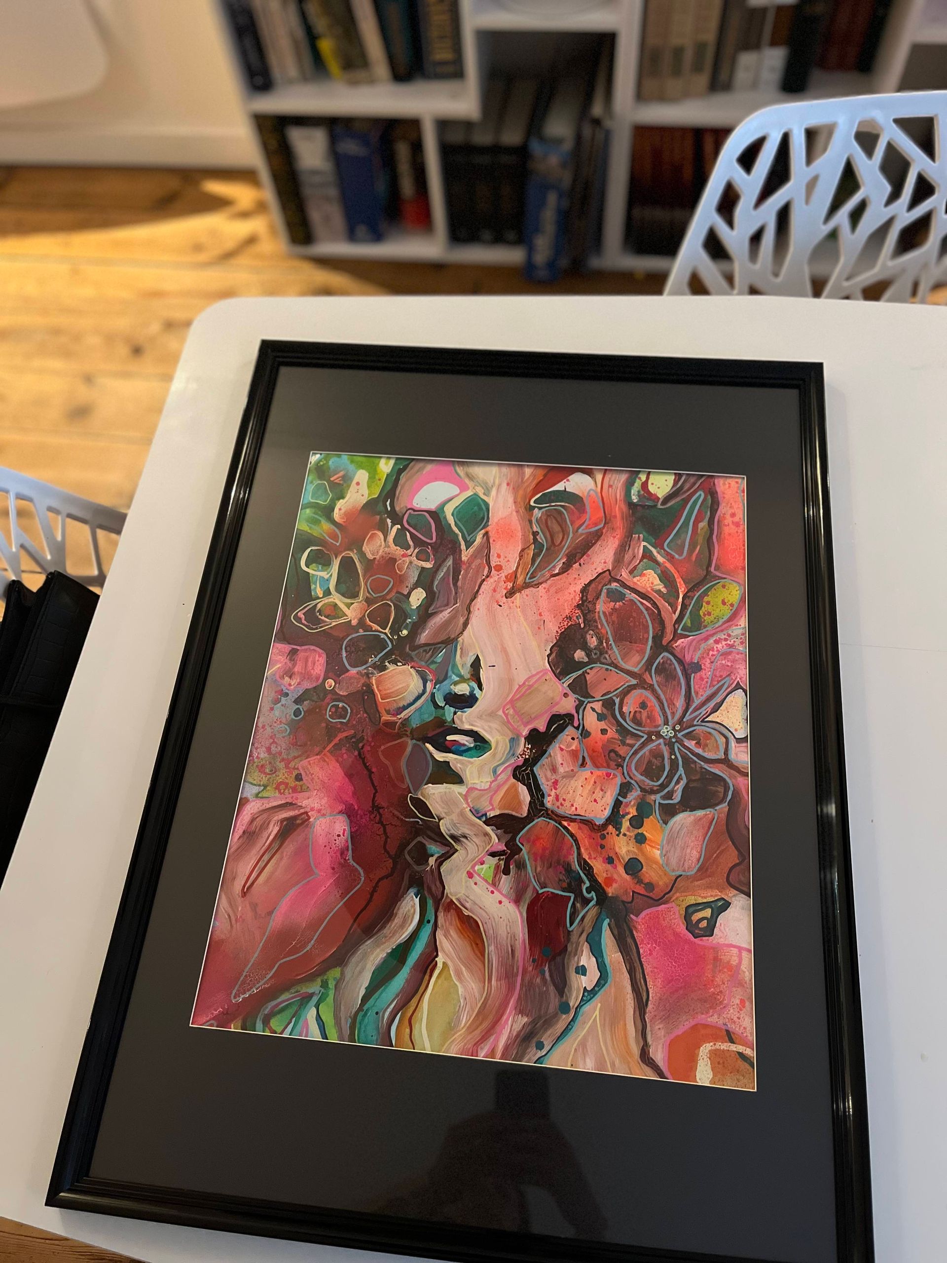 Première peinture de la dernière collection en travaux. Cette oeuvre est vendue avec un encadrement sous verre.
