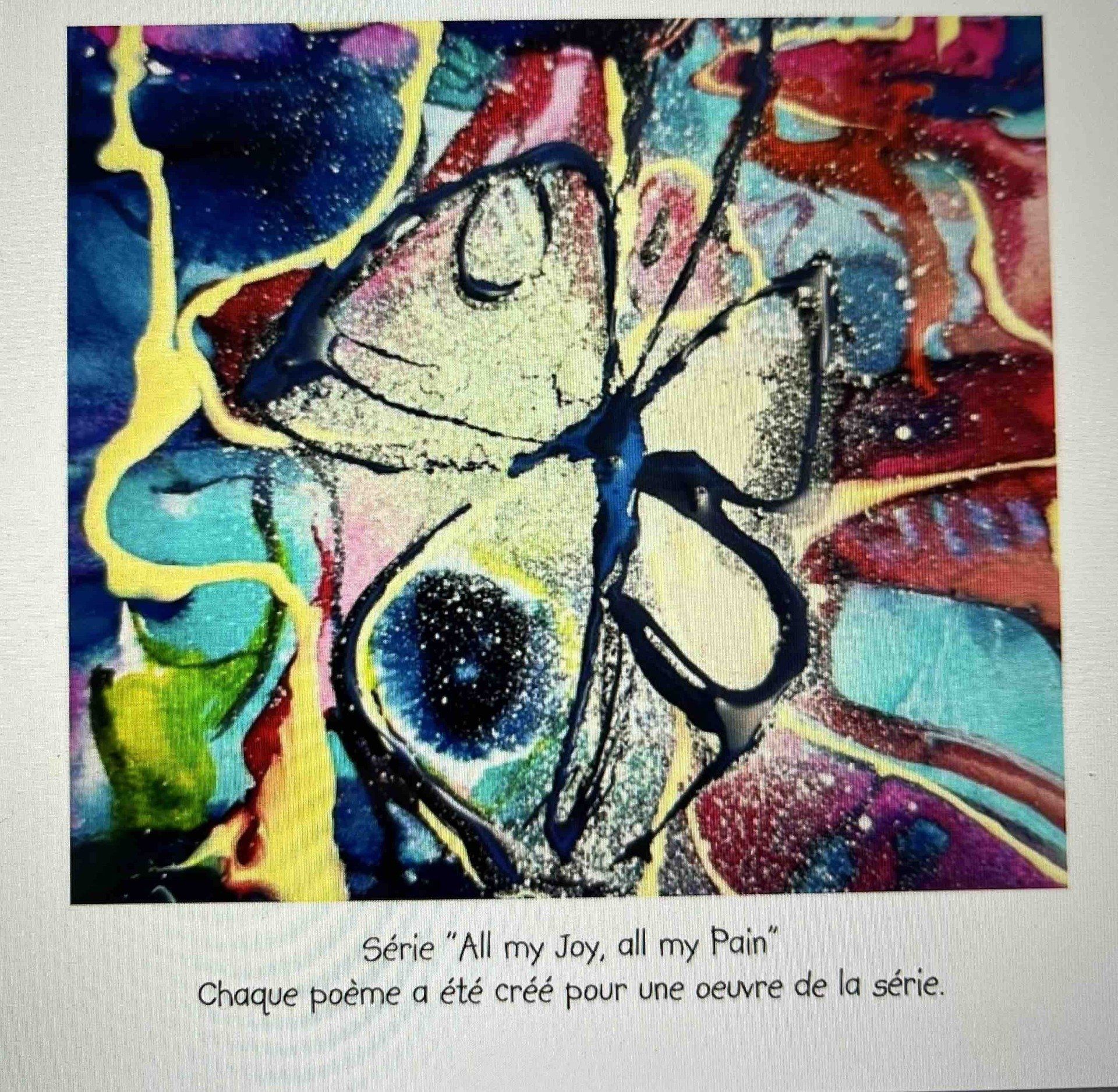 Pour la série "All my Joy, all my Pain" j'ai choisi d'allier les mots aux émotions et j'ai créé un Carnet de poésies unique. Après l'achat de certaines oeuvres, certains acquéreurs ont sollicité la création de ce carnet qui présente la série en son intégralité.